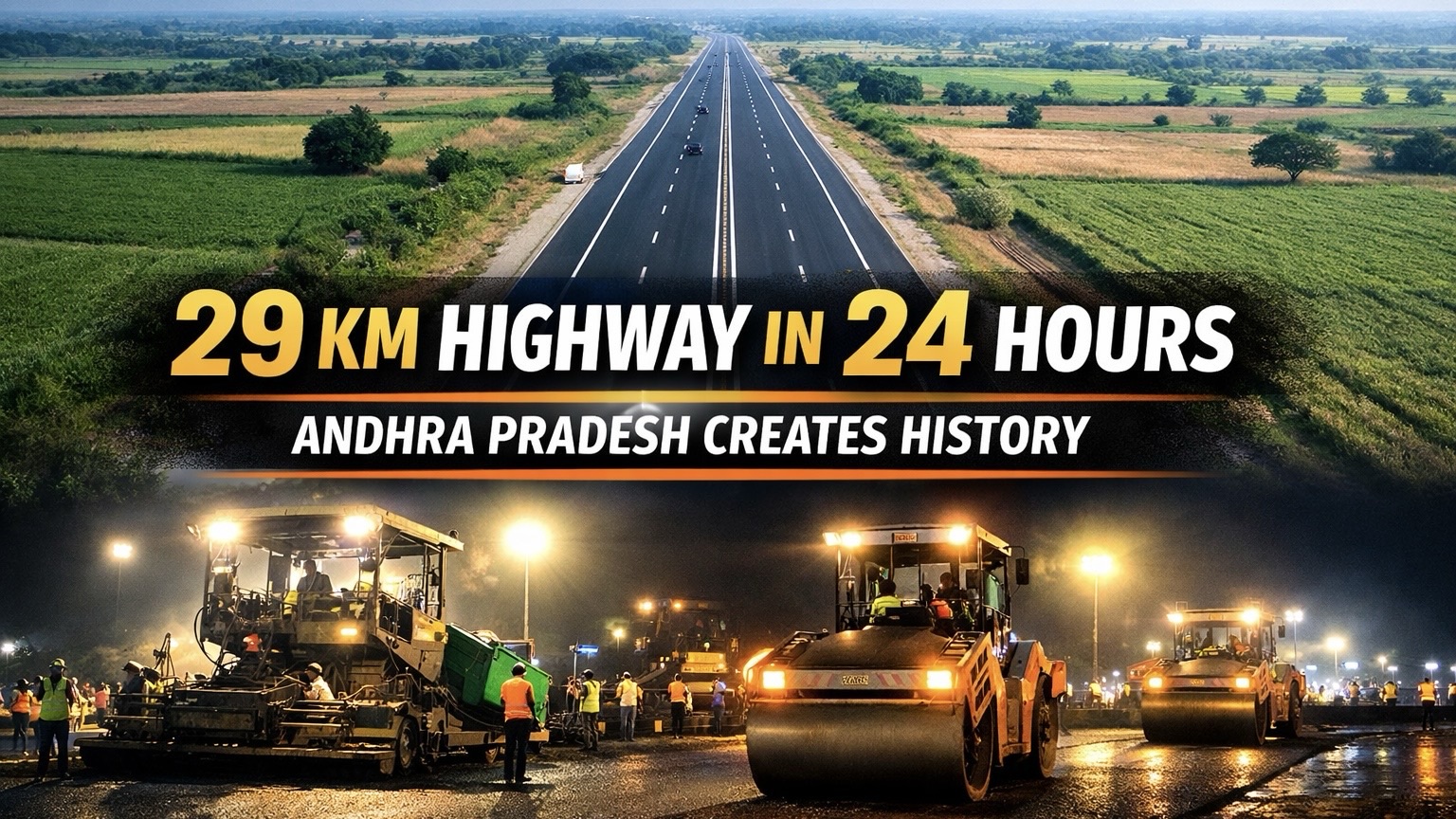 Andhra Pradesh has once again grabbed national attention by achieving an extraordinary infrastructure milestone. In a record-breaking feat, a 29-kilometre-long highway stretch was completed within just 24 hours, setting a new benchmark in Indian road construction history.